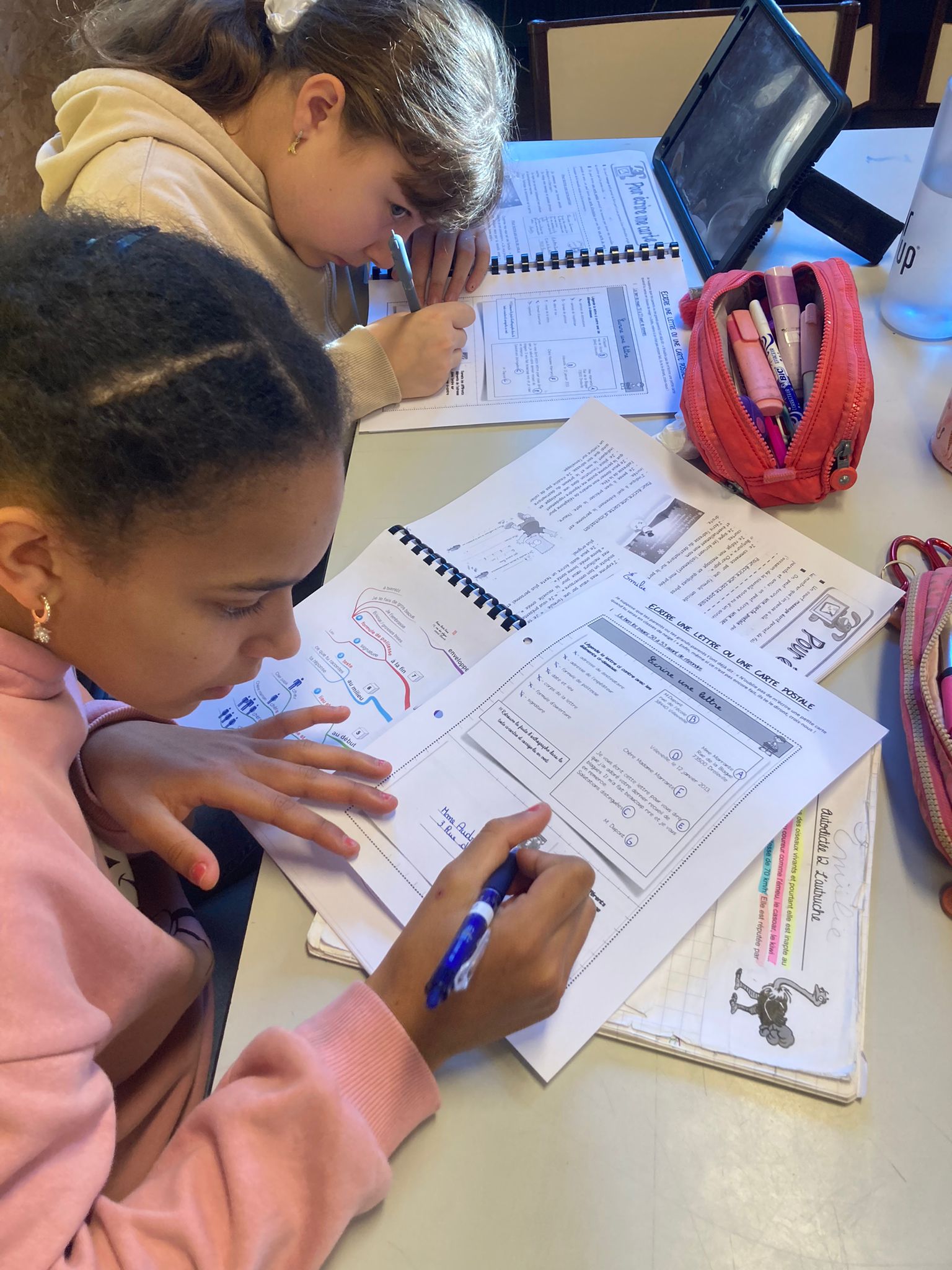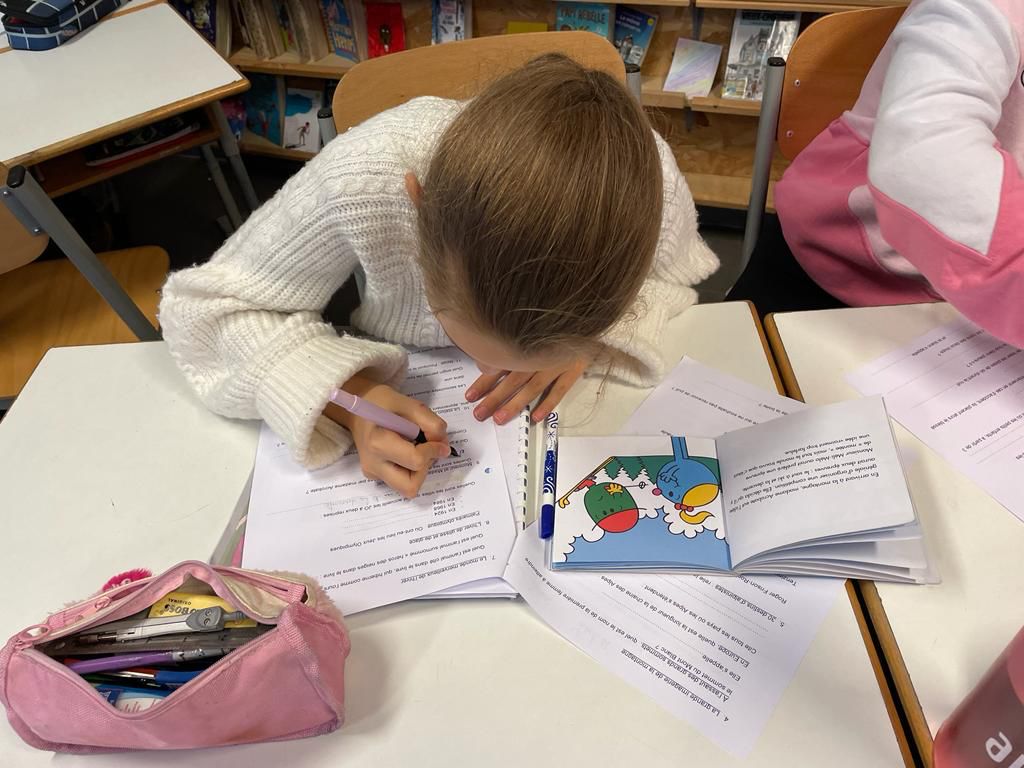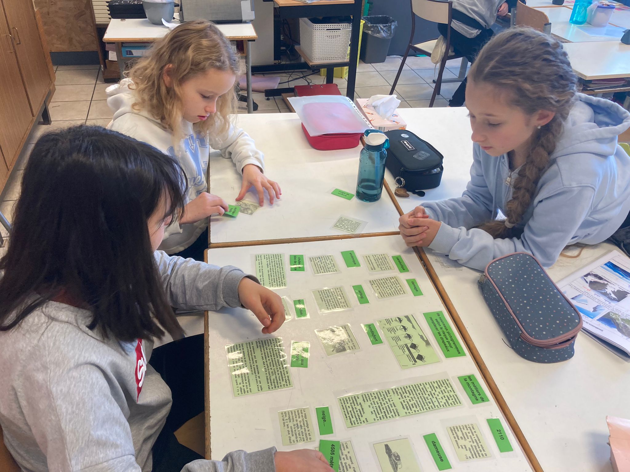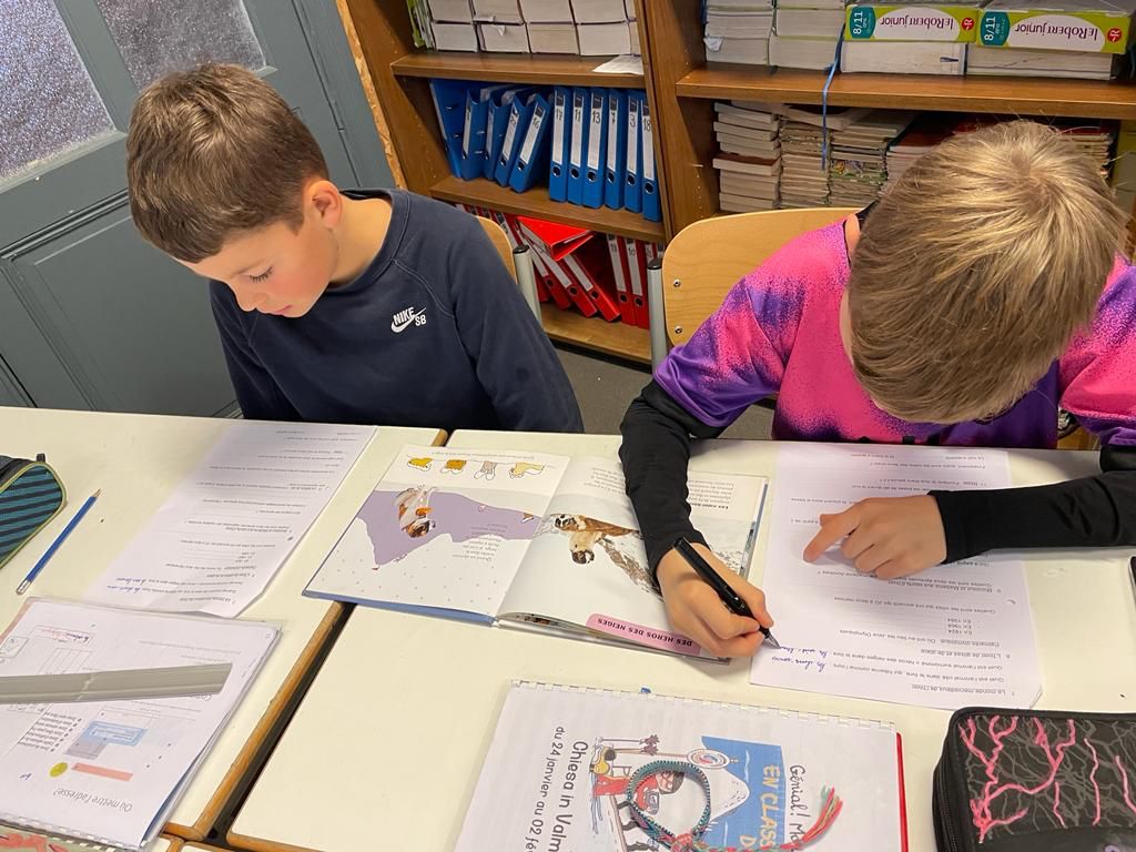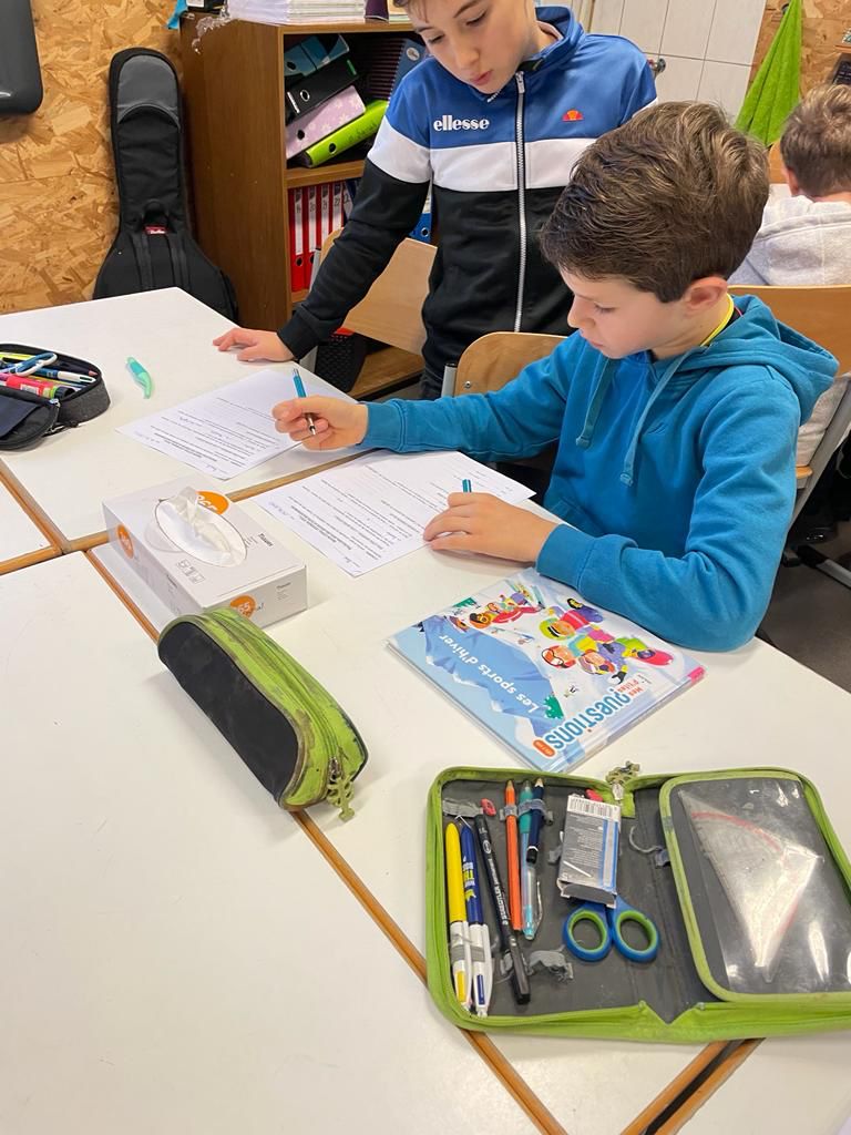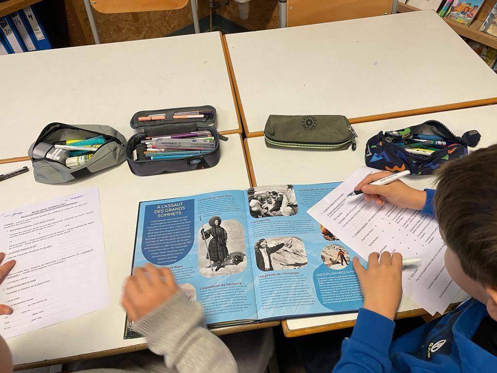 Les ateliers de classes de neige se poursuivent : écrire une carte postale, une lettre et une enveloppe, remettre une histoire en allemand dans l’ordre, parcourir des livres à la recherche d’informations diverses sur la montagne en équipe et jouer à un quizz sur le vocabulaire de la montagne.