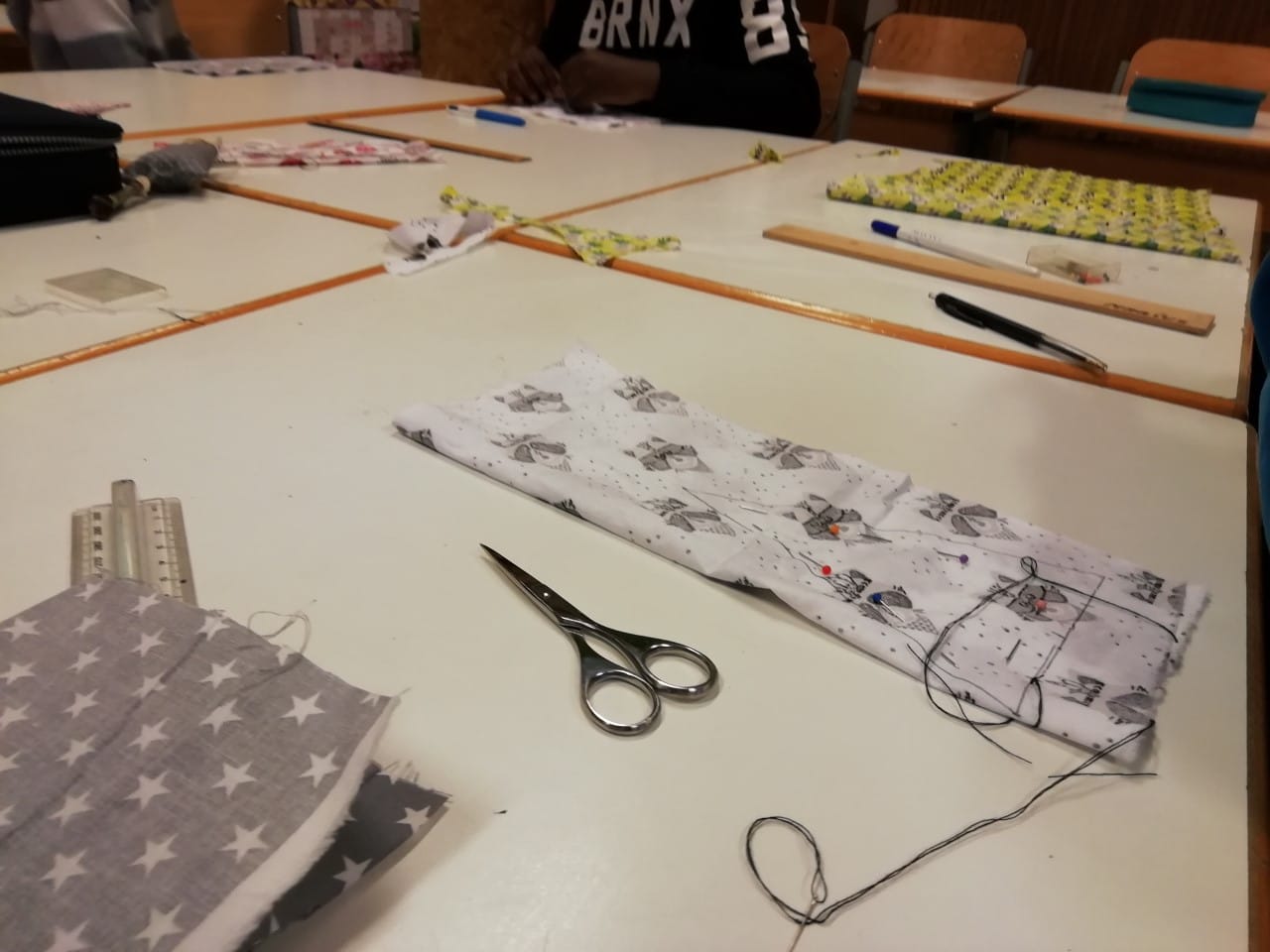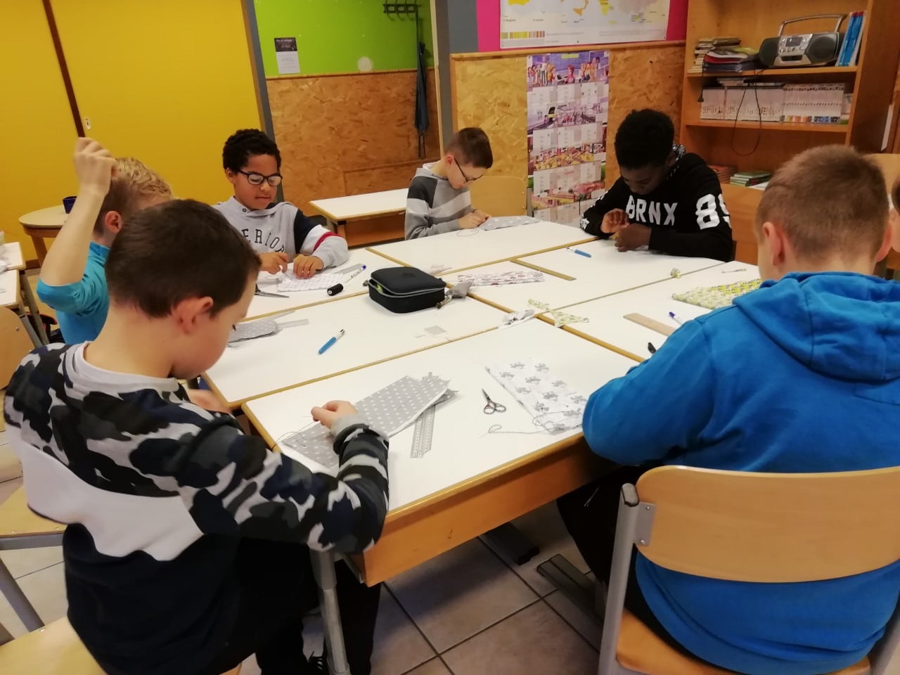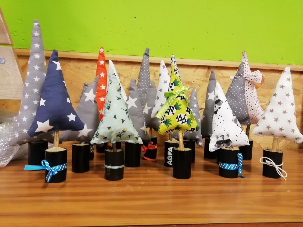 Quand on se lance le défi de coudre À LA Main avec les 5ème année, ça nous donne une jolie petite forêt de sapins.