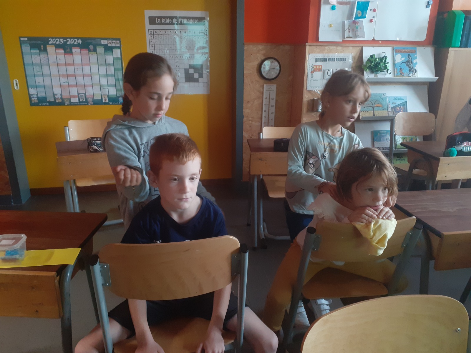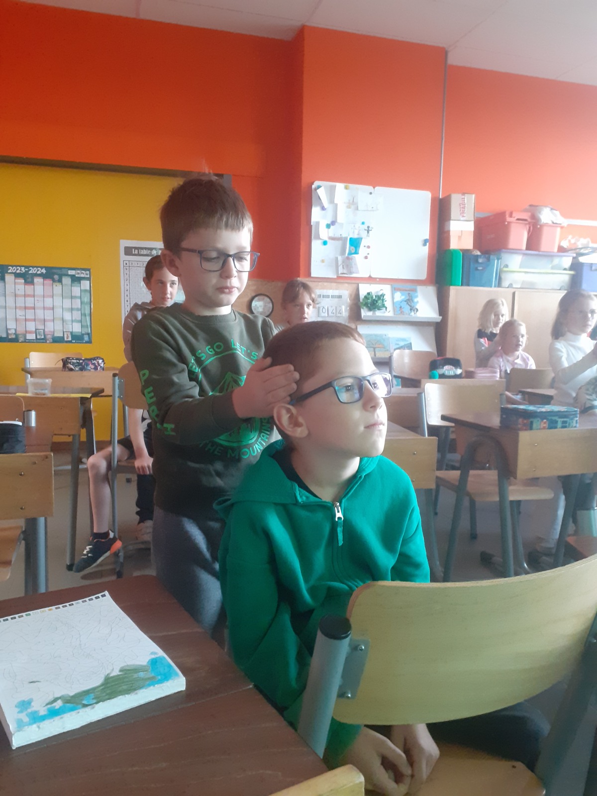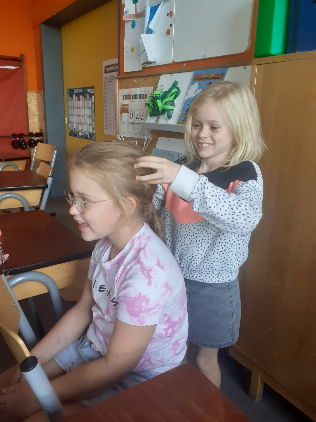 En P3, les élèves s’offrent de temps à autre des massages. Cette pratique permet d’instaurer un climat de confiance, de bien être, de respect de soi et des autres, d’écoute, de partage… Madame Jessica (PMS) nous a formés et maintenant, on adore ça !