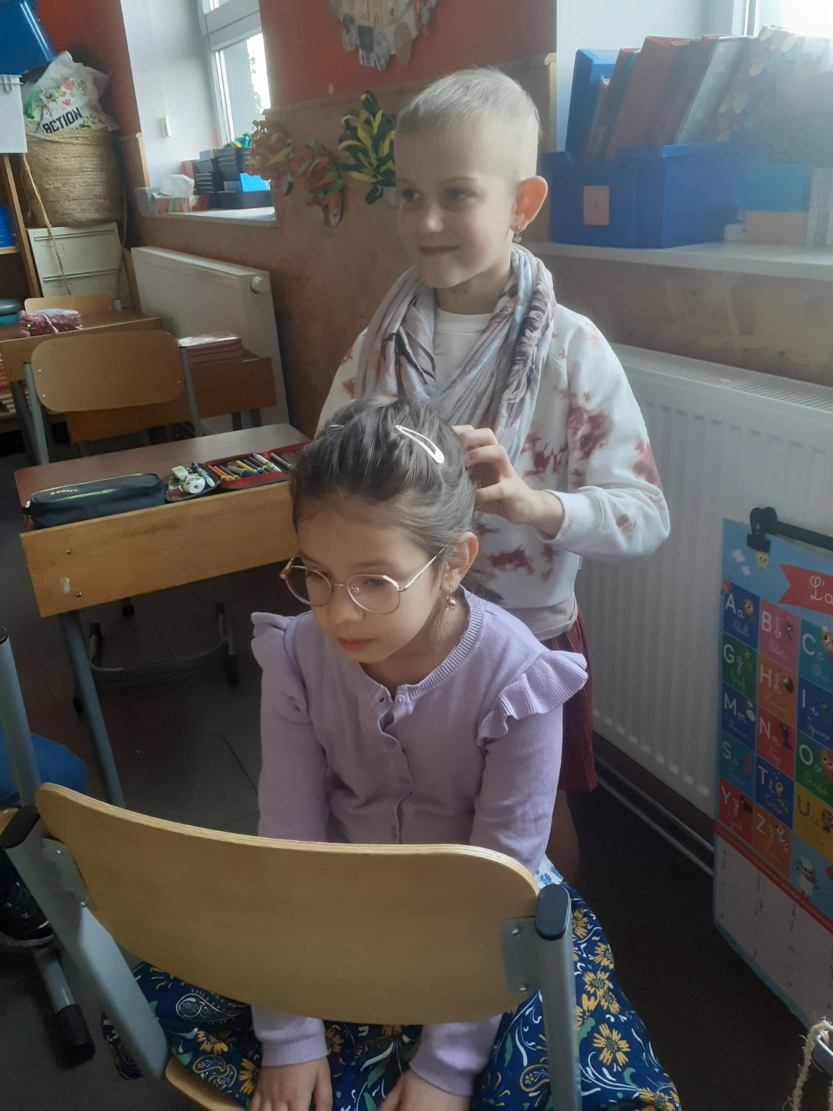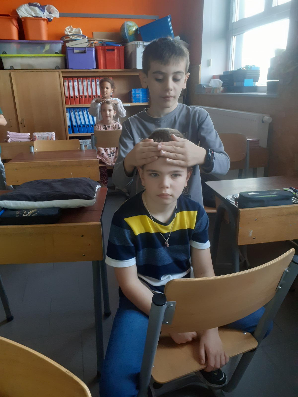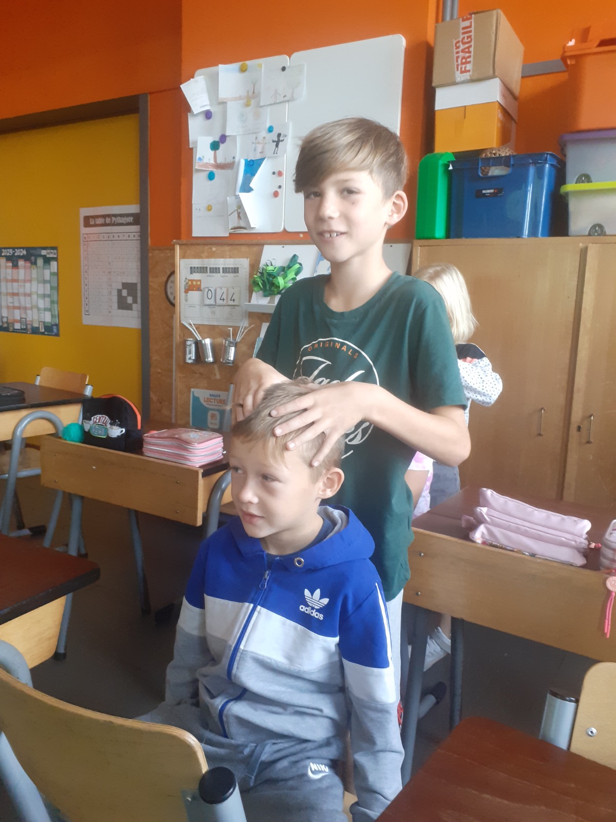 En P3, les élèves s’offrent de temps à autre des massages. Cette pratique permet d’instaurer un climat de confiance, de bien être, de respect de soi et des autres, d’écoute, de partage… Madame Jessica (PMS) nous a formés et maintenant, on adore ça !