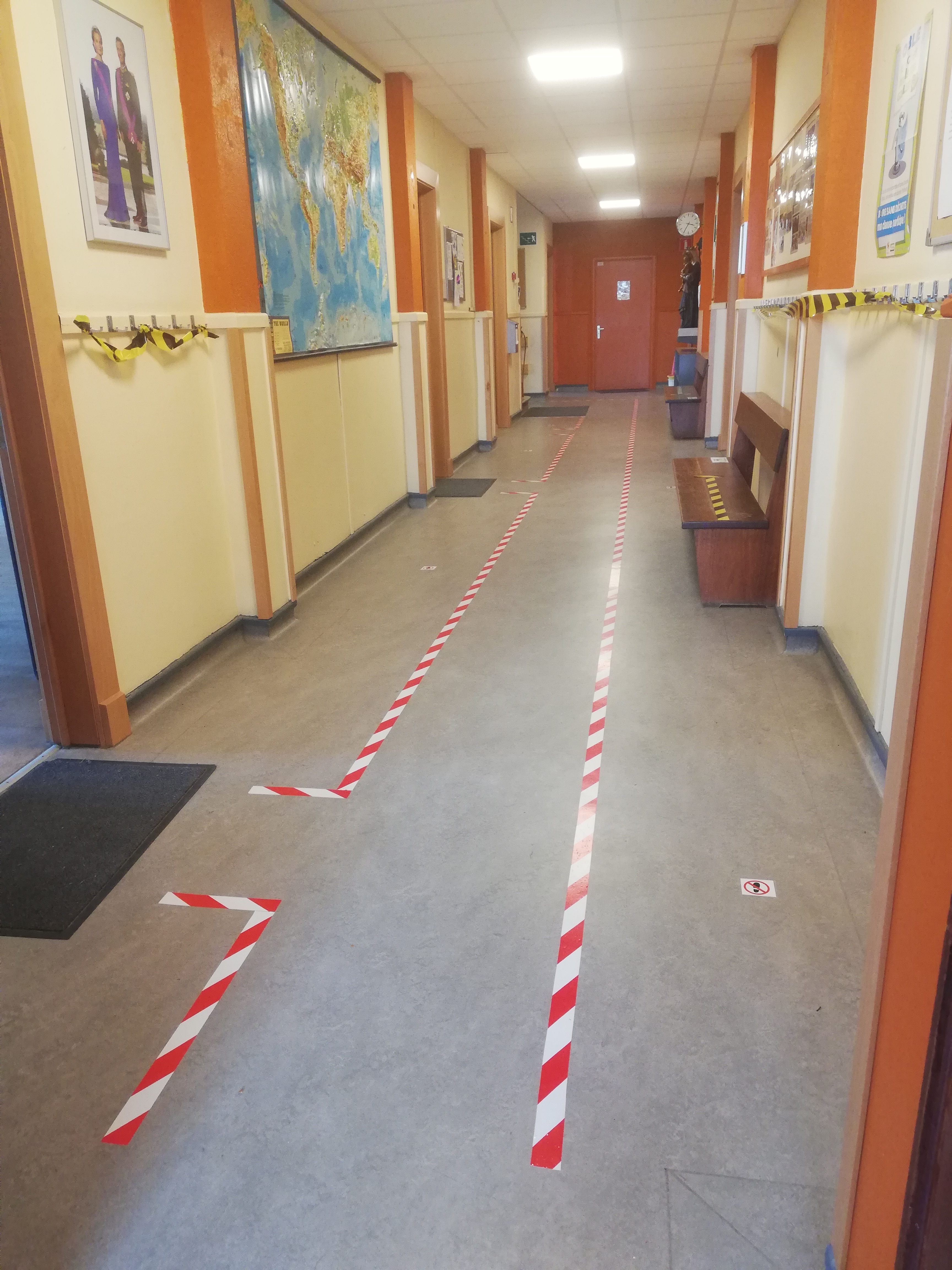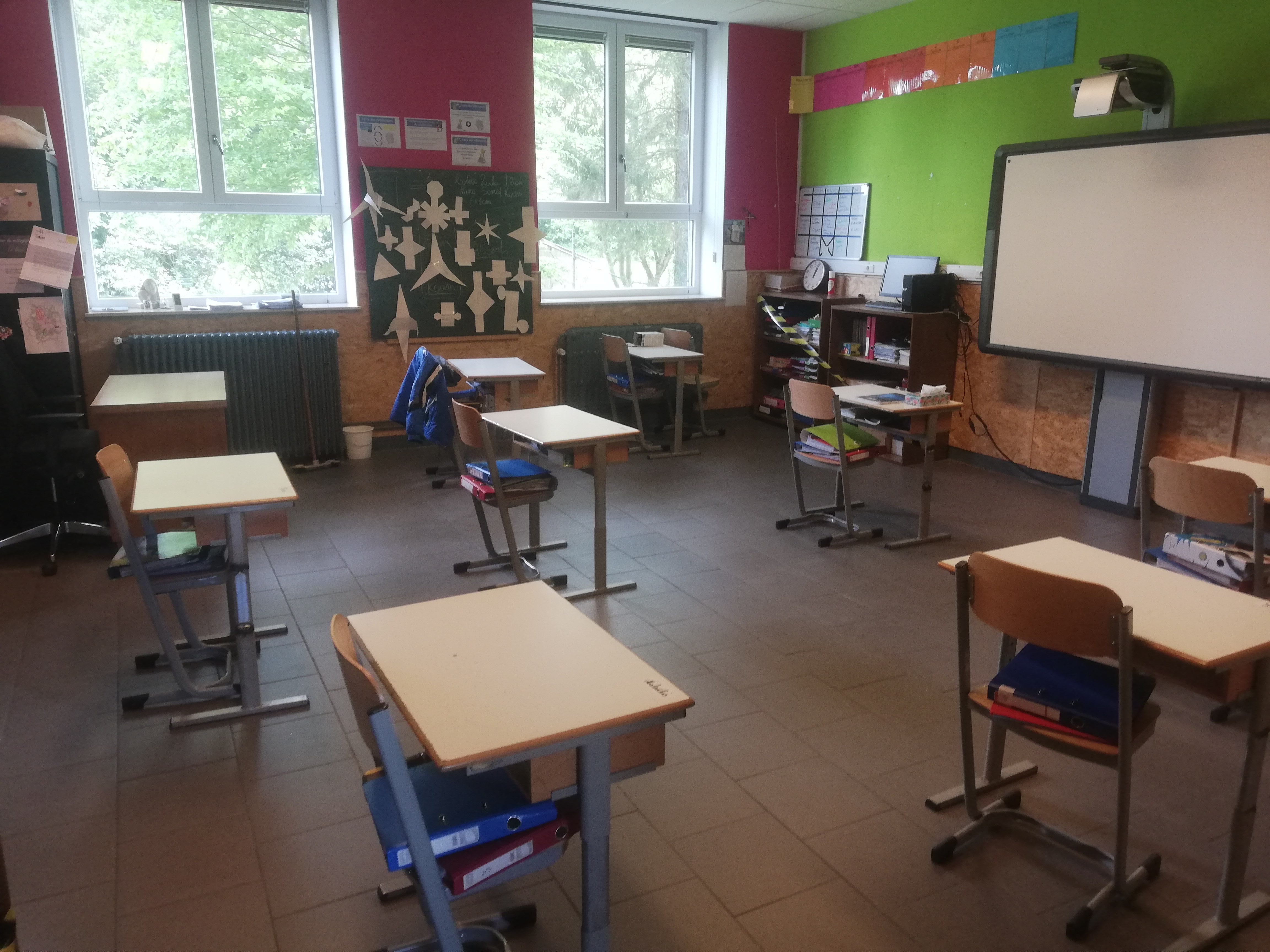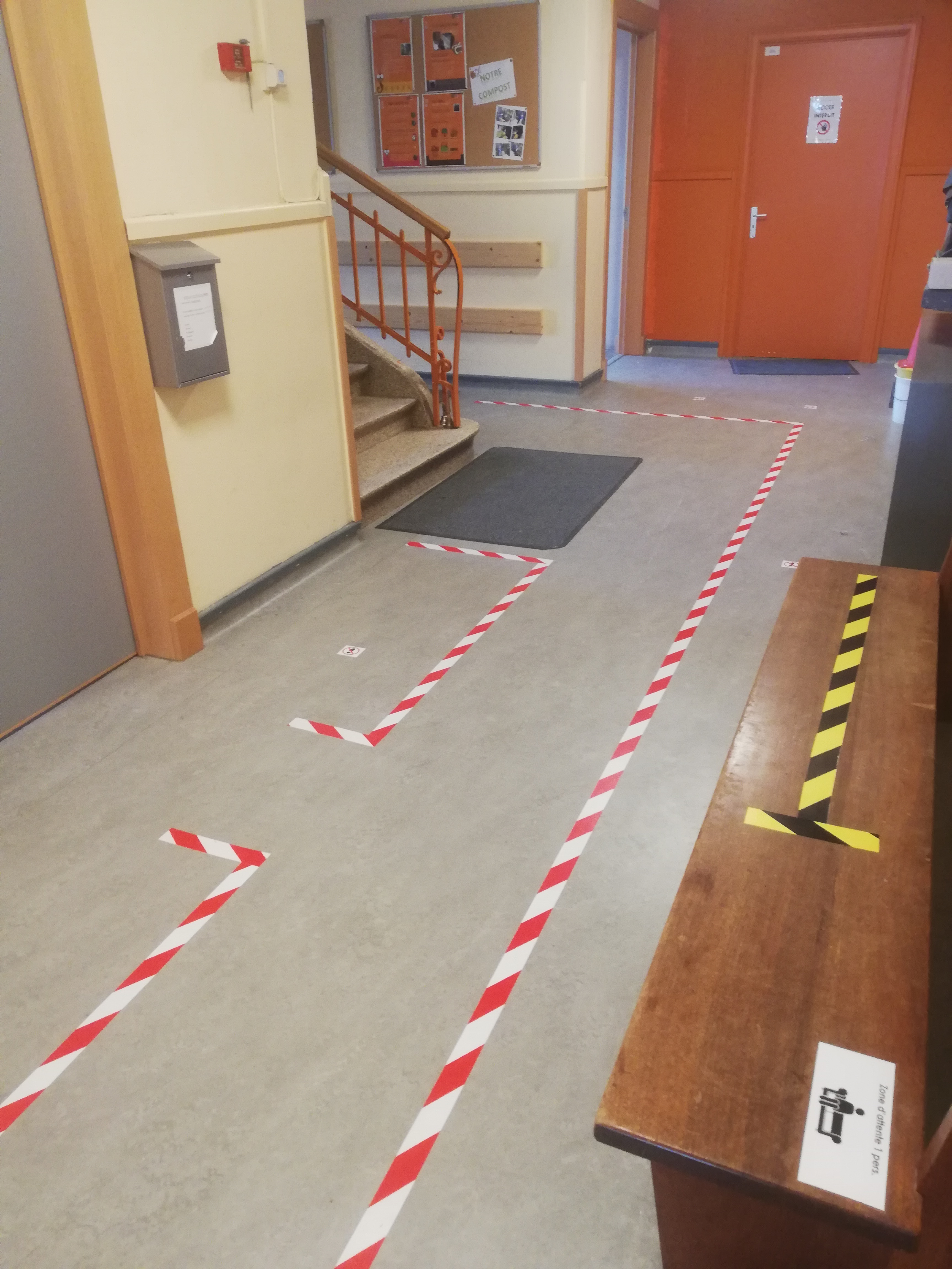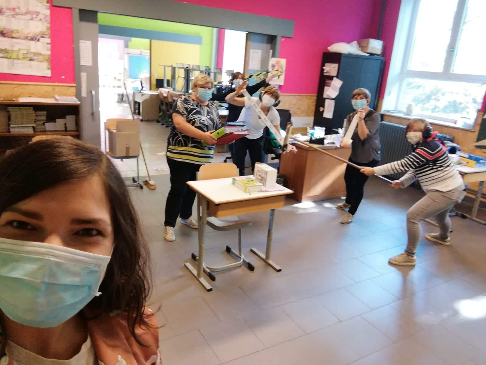Réaménagement des classes aux normes 4m²/enfant et 8m²/adulte, pictogrammes de sécurité et consignes affichées partout !