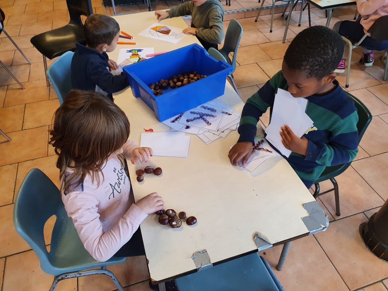 Les 1ère et 2ème années ont réalisé des ateliers sur le thème de l’automne. Coloriage, peinture, atelier pâte à sel, jeux, devinette de lettres avec des marrons et dégustation de châtaignes les ont occupés durant 2 après-midis. Un vrai plaisir pour eux et leurs institutrices.