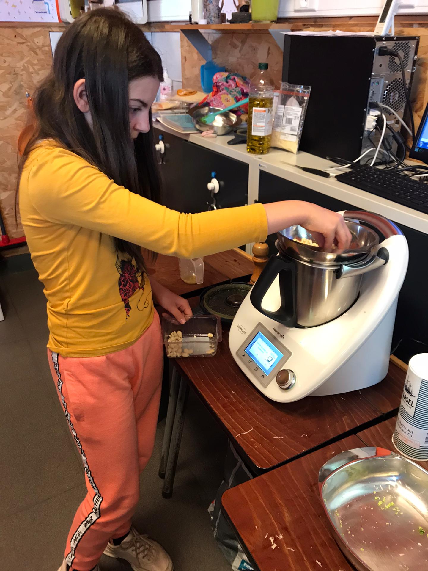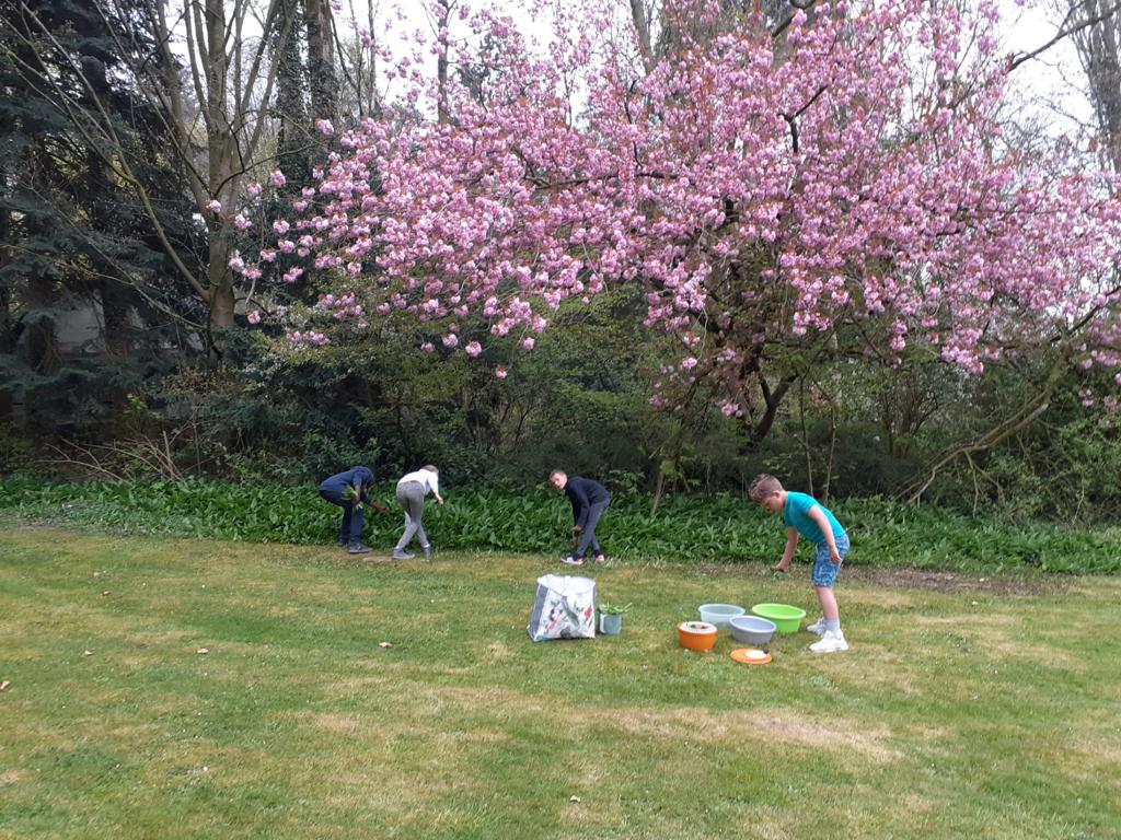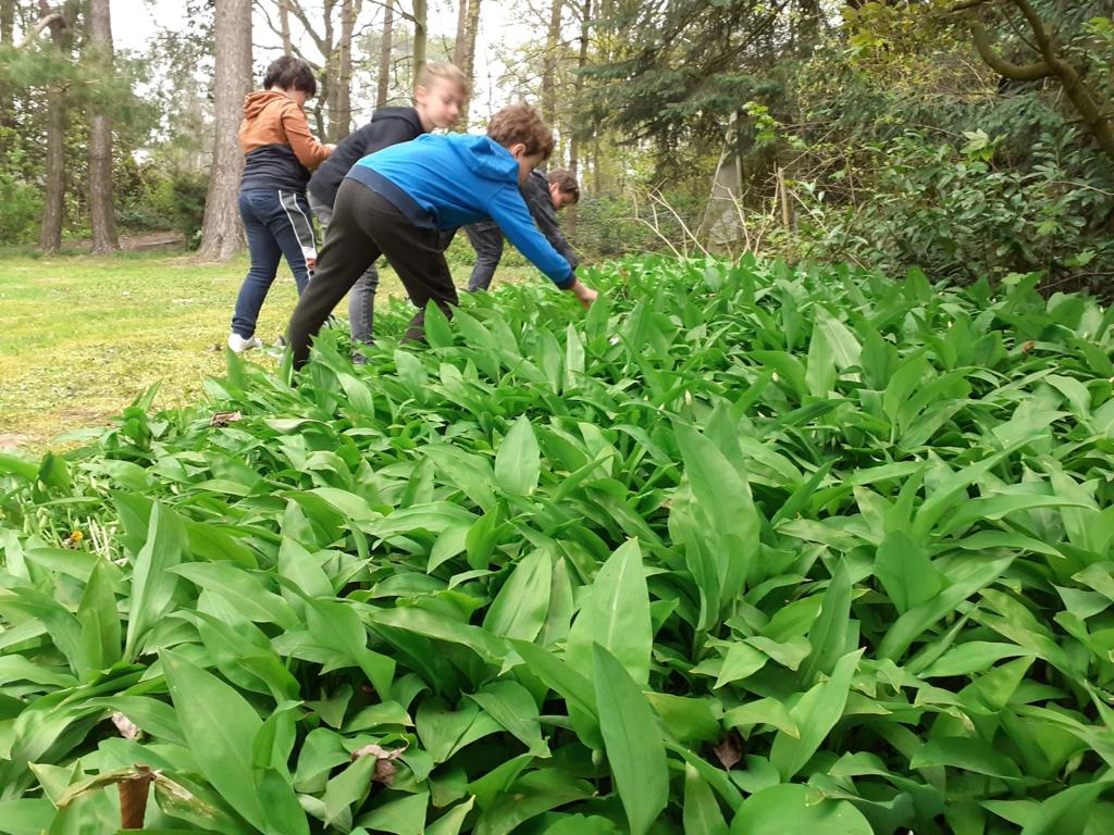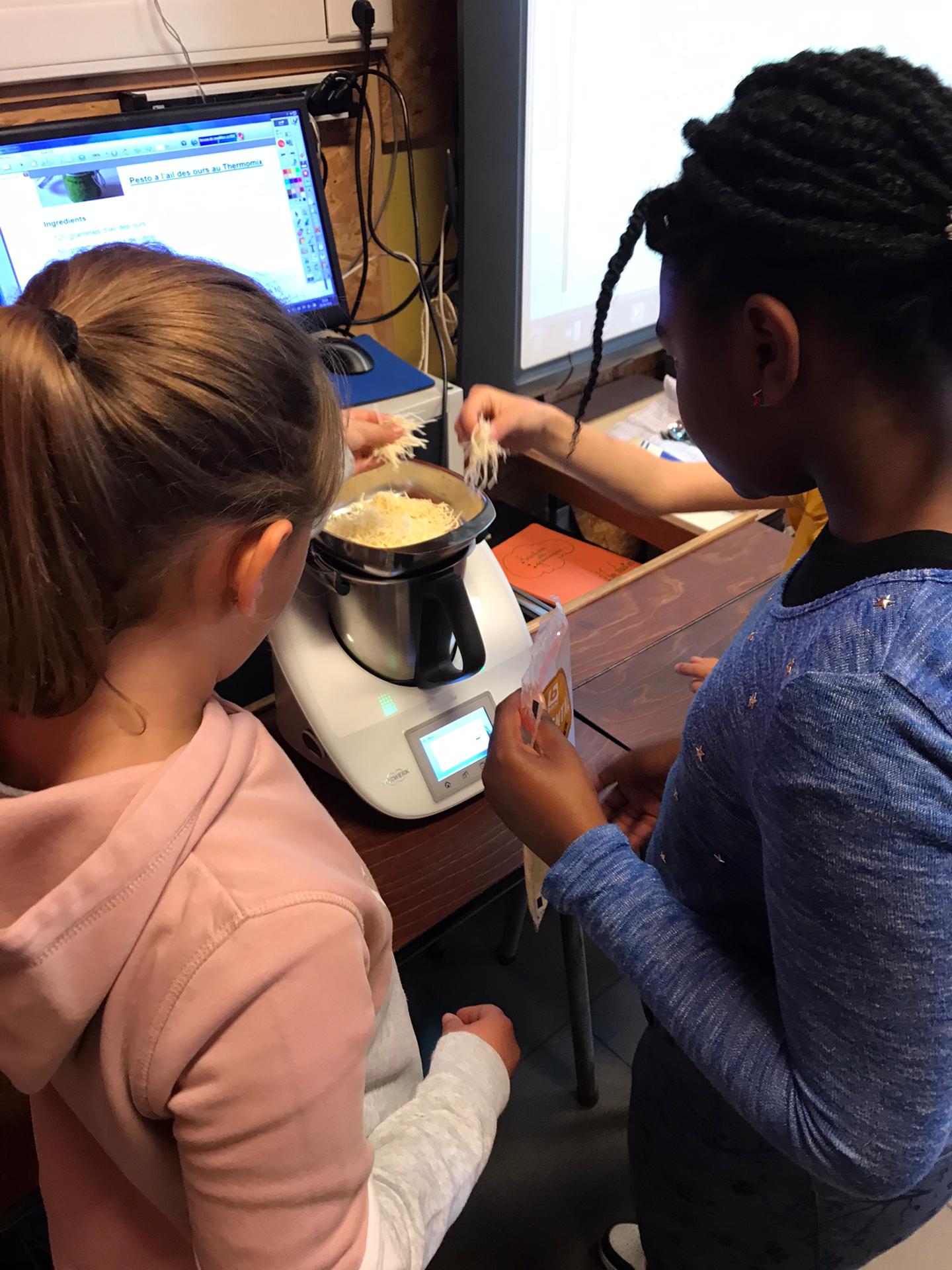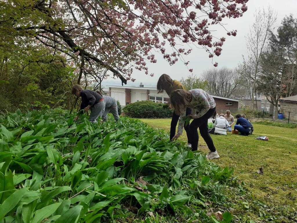 Les élèves de P3 et P4 profitent de ce que la nature nous offre pour cuisiner un délicieux pesto à l’ail des ours pour la fête des mamans !