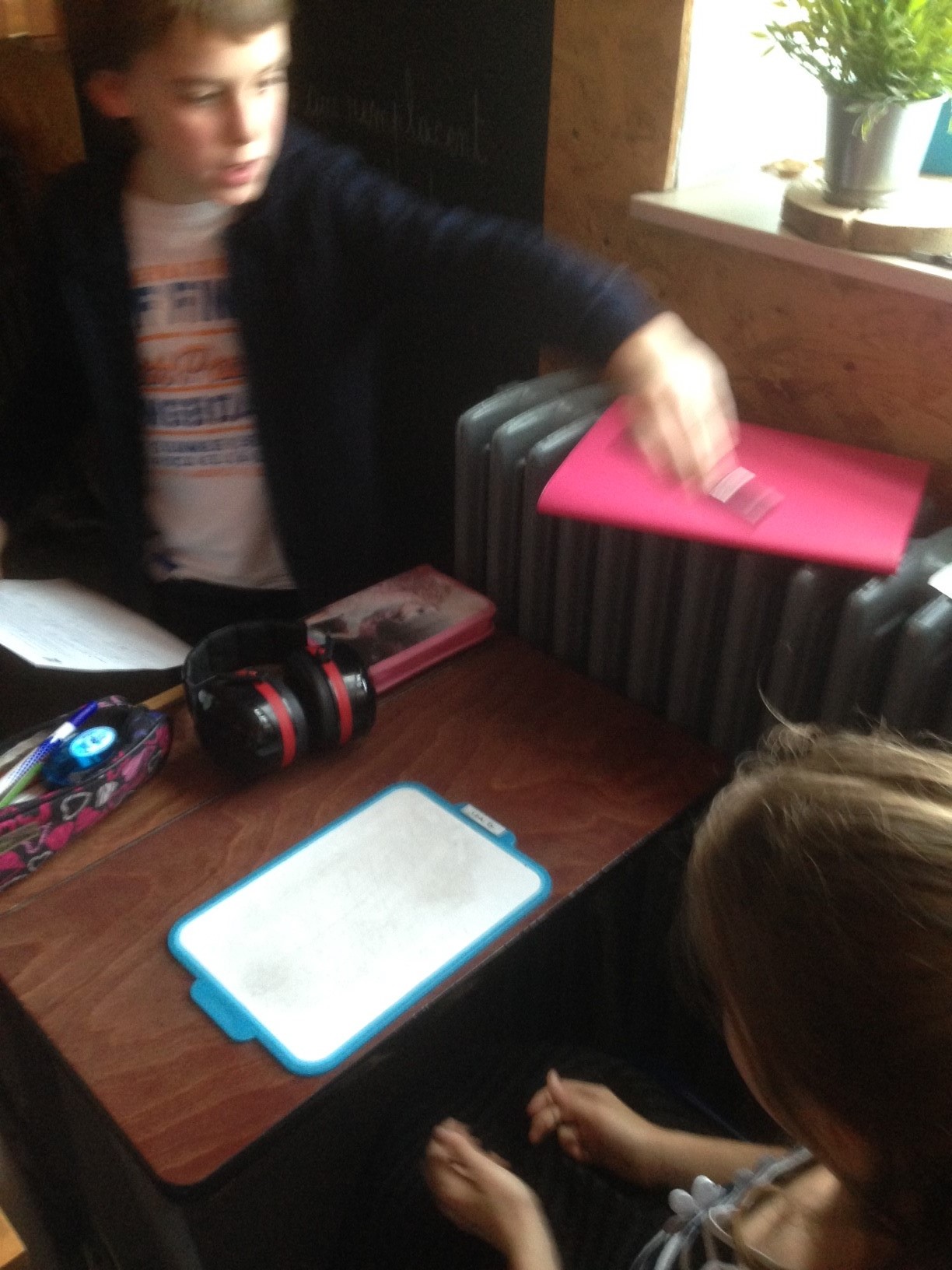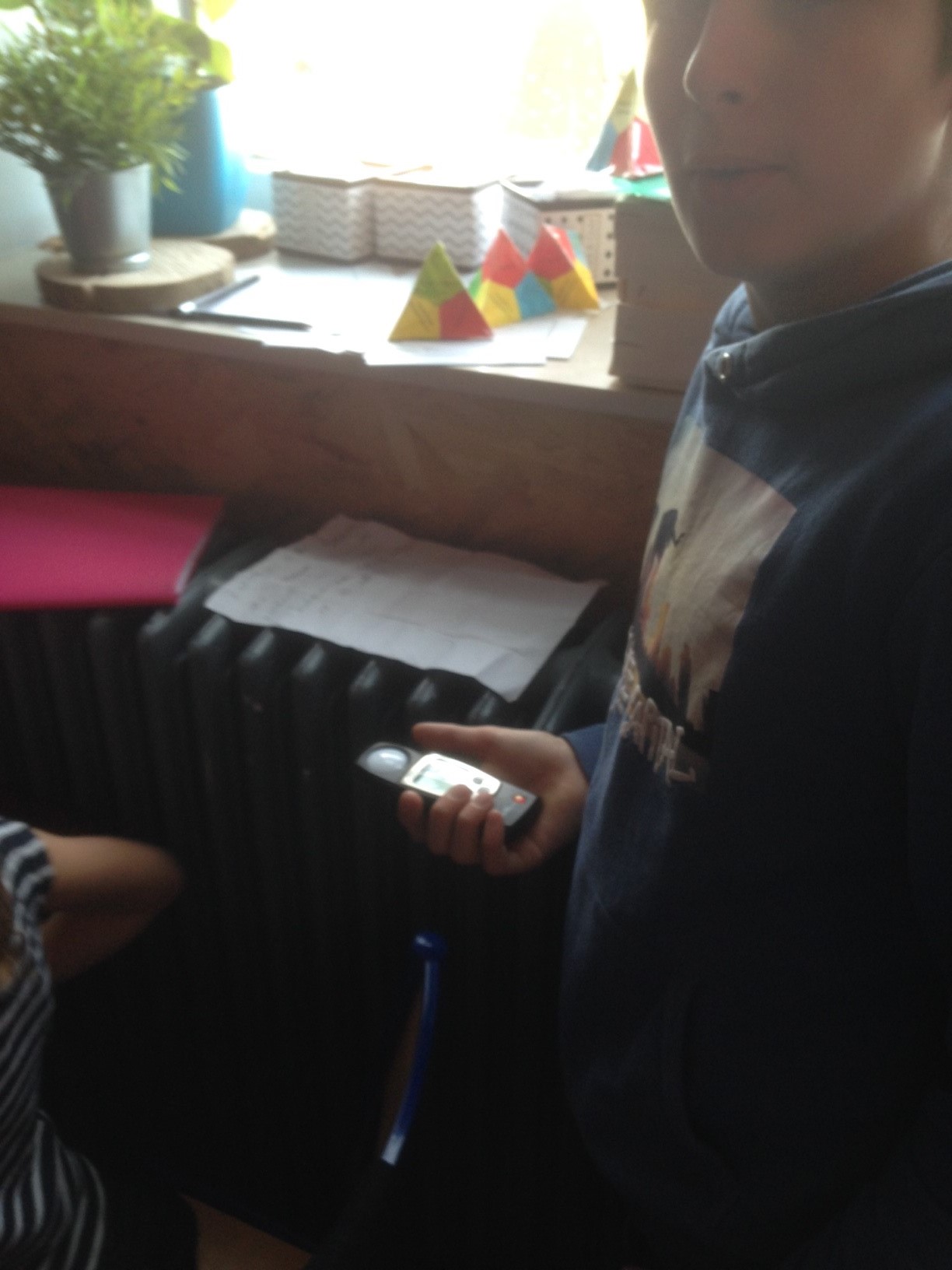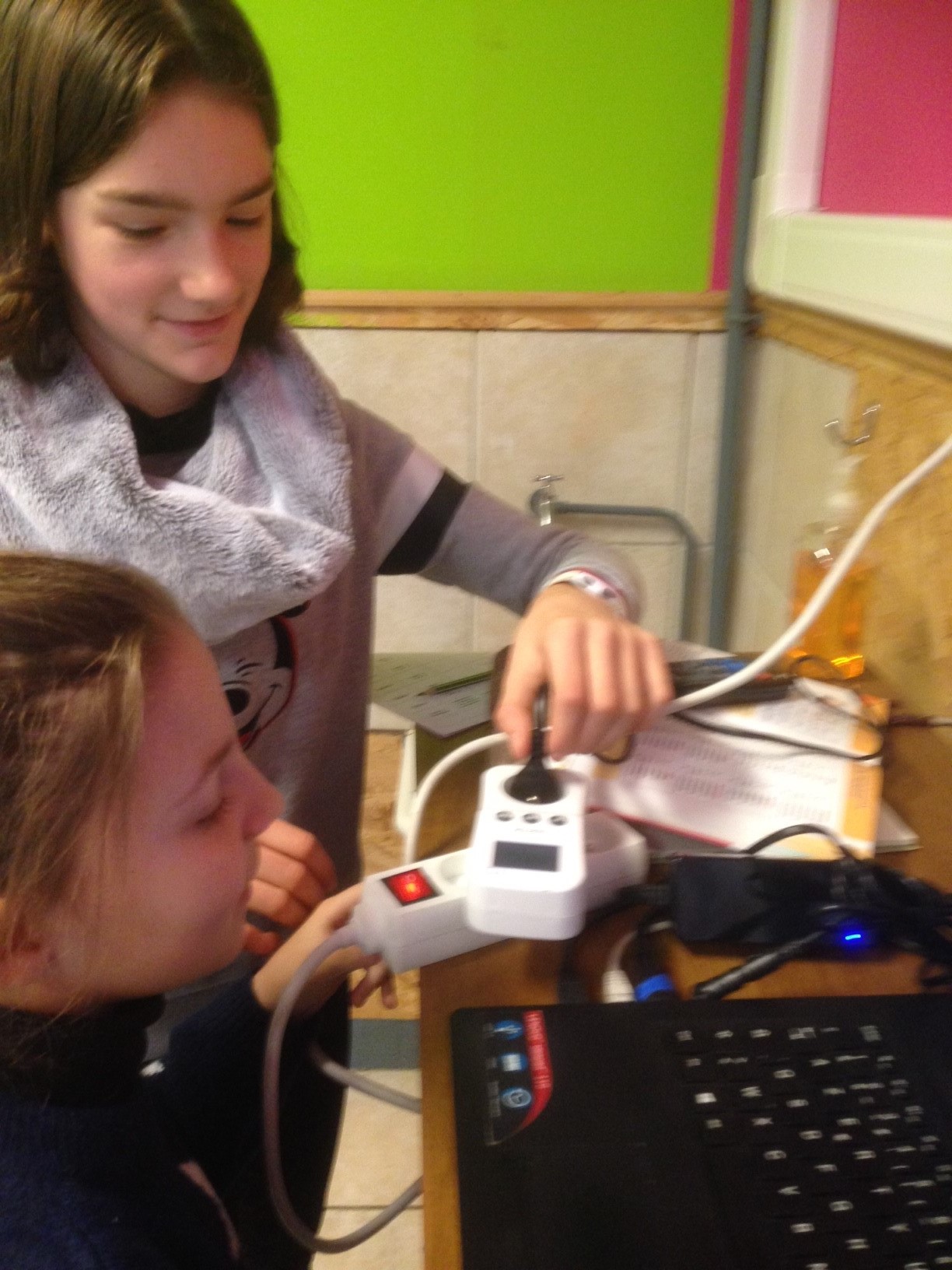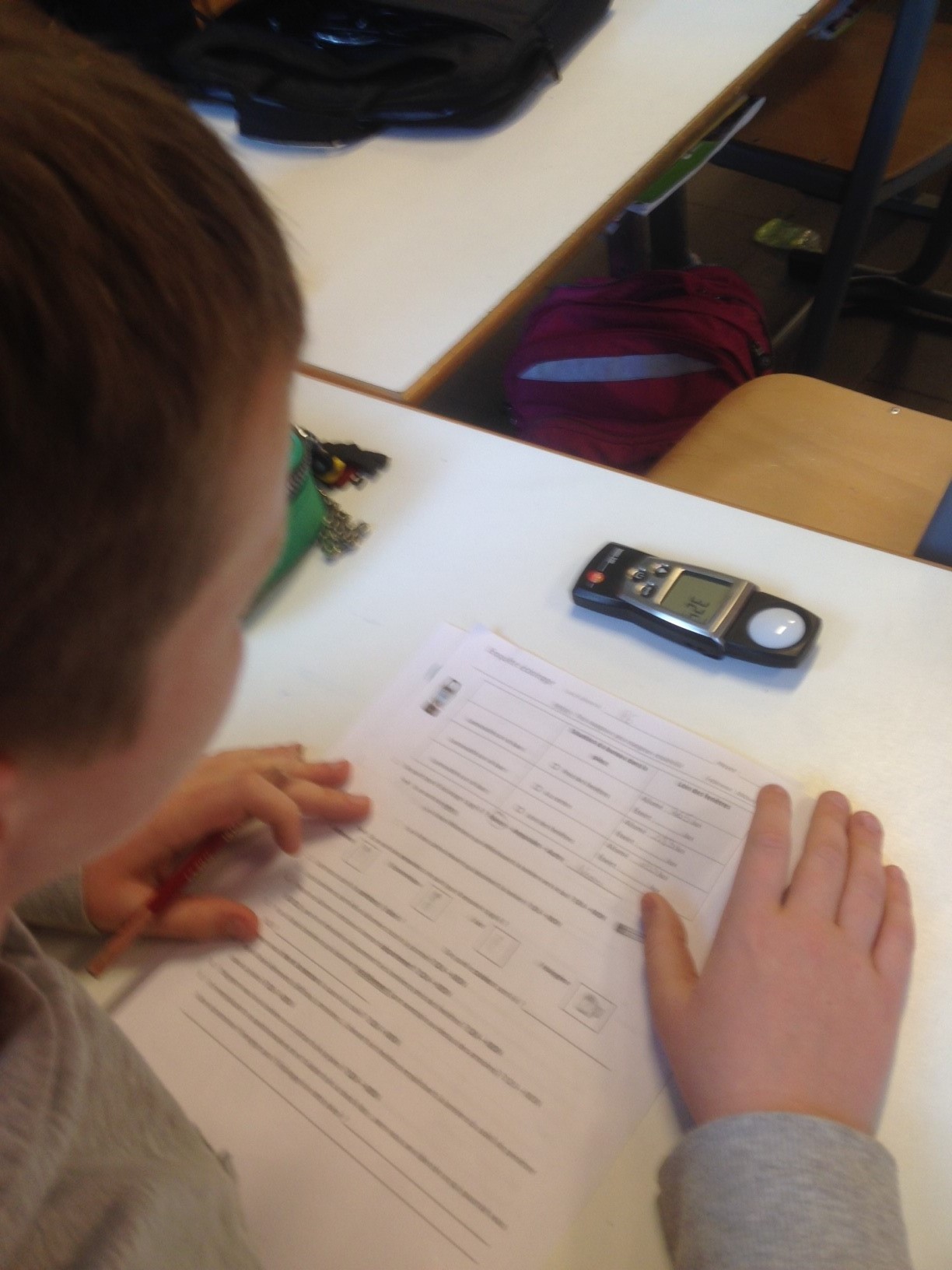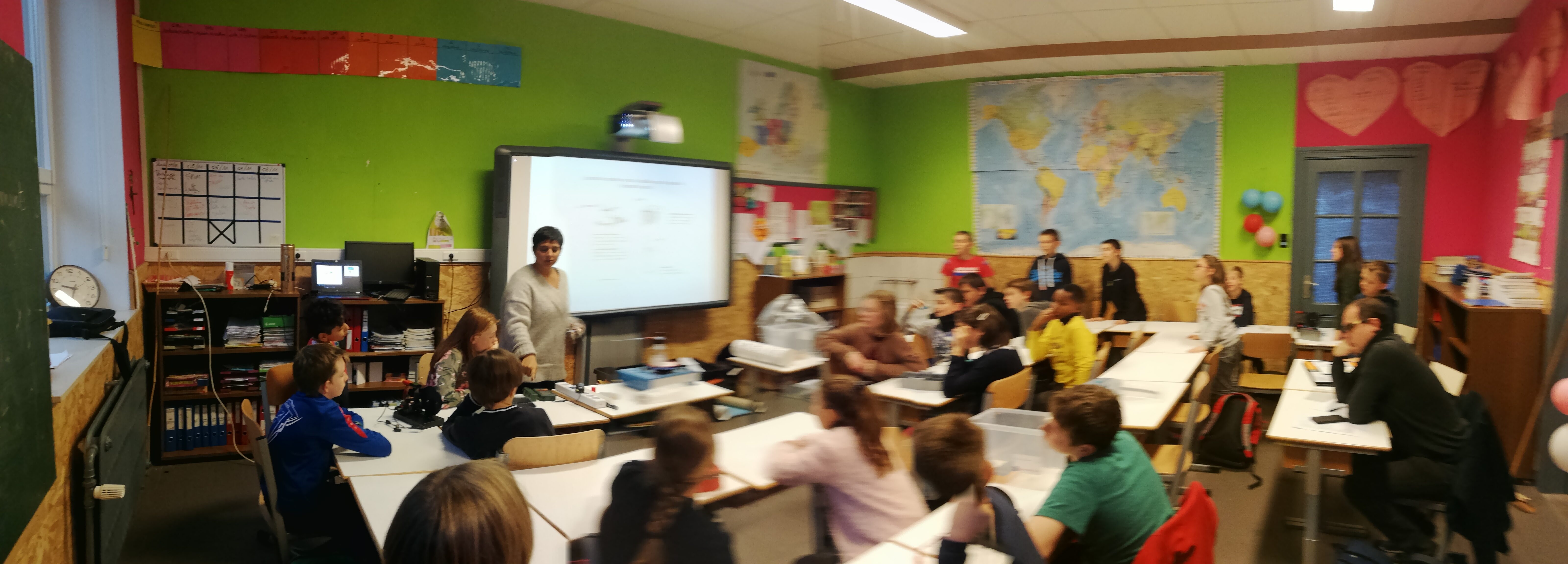 Très vite, les élèves de P6 sont envoyés dans les classes pour mesurer, à l’aide de matériel spécifique, les différentes consommations. L’école est prise d’assaut par des petits chasseurs de « pertes d’énergie » et le constat nous interpelle… Du bureau à la salle de gym, en passant par toutes les classes et les réfectoires, mais aussi la salle des profs : tout est analysé et mesuré par notre équipe de jeunes experts…